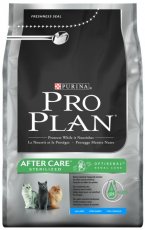 PRO PLAN After Care je krmivo se záměrně sníženým podílem energie speciálně přizpůsobené potřebám mladých a dospělých kastrovaných či sterilizovaných koček. Vysoce stravitelná receptura PRO PLAN AfterCare s vysokým podílem kuřecího masa a s masem z králíka je speciálně sestavena tak, aby zabraňovala přibírání na váze a ochraňovala močové cesty. Díky tvaru a struktuře granulí pomáhá předcházet tvorbě zubního plaku a kamene.