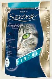 Sanabelle Dental krmivo pro dospělé kočky je vhodné zejména pro kočky, které mají problémy s udržováním hygieny chrupu. Jedinečná velikost a povrch granulí nutí Vaši kočku více a déle kousat a malé kousky granulí působí na chrup jako kartáček. Tento účinek je posílem obsahem rostlinné vlákniny. Obsažené vitamíny (např. vitamín A) působí pozitivně na sliznici.