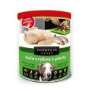 čtvrtka kuřete s celými rybami (100% podíl živočišných bílkovin, 70 % kuře, 30 % ryba).